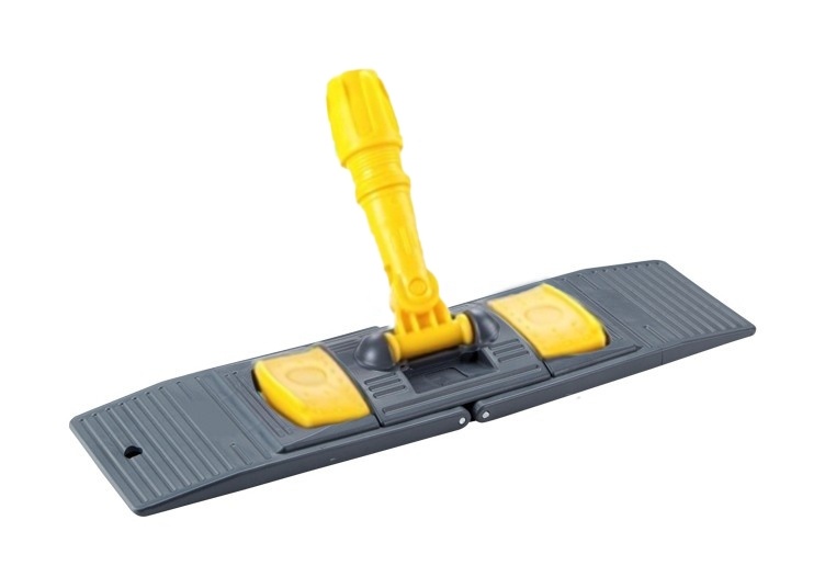 Держатель мопов имеет размер рабочей поверхности 50х13см. Флаундер для плоских мопов выполнен из высокопрочного, устойчивого к ударам и нагрузкам пластика (полипропилена), имеет две педали для удобного складывания, оснащен шарнирным соединением, обеспечивающим хороший контакт мопа с поверхностью и свободу движений.
