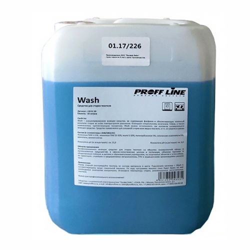 Wash – концентрированное моющее средство, не содержащее фосфатов и обеспечивающее отличный результат стирки во всём температурном диапазоне. Благодаря специальному сочетанию ПАВов, а также компонентам, препятствующим посерению, Wash можно использовать как основное универсальное моющее средство. Средство применяется для основной стирки всех видов текстиля, в т.ч. из шерсти и шёлка.