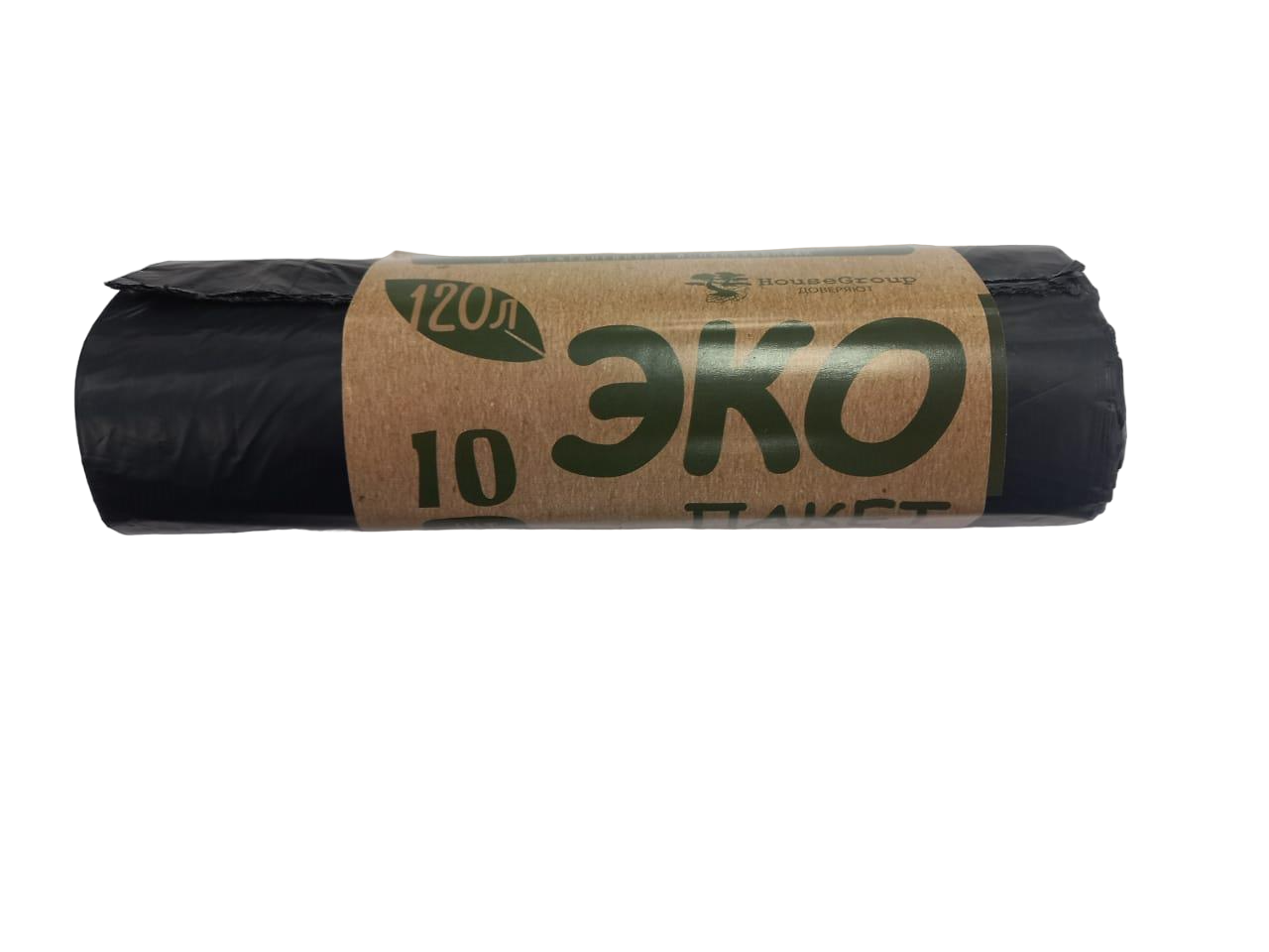 Мешки для мусора: 120л ЭКО ПНД, черные, 15мкм, 100*70см, 10шт/рул, 20рул./упак.