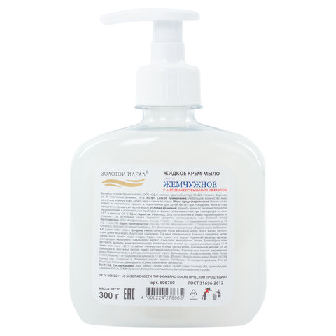 Мыло: Мыло-крем жидкое 300г ЗОЛОТОЙ ИДЕАЛ "Жемчужное", с антибактериальным эффектом