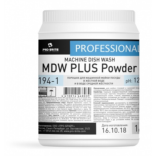 Pro-Brite: MDW Plus Powder 1кг/6шт Порошок для посудомоечной машины в жесткой воде