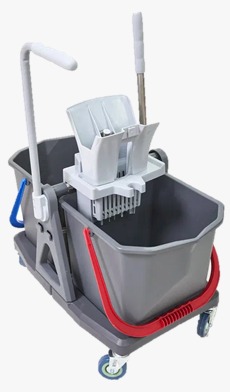Ведра имеют цветовую кодировку. Ведро с красной ручкой используется для полоскания и отжима моющих насадок. Ведро с синей ручкой для чистого моющего раствора.