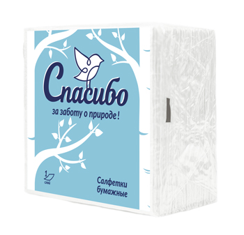 Современные технологии позволяют создать из восстановленного целлюлозного волокна такую же привычную белую салфетку с отличными впитывающими свойствами. Однослойные бумажные салфетки «Спасибо за заботу о природе» подойдут, как для личной гигиены, так и для сервировки стола и хозяйственно-бытового использования.