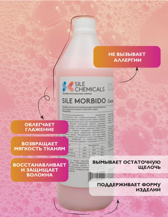 Sile Chemicals: SILE MORBIDO PINC EMOTION (Розовое настроение) Kондиционер-ополаскиватель 1л.6шт/уп